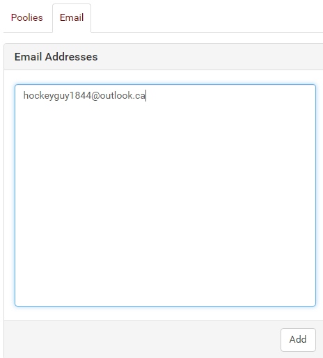 3. To add poolies that haven't participated in a past pool, click on the "Email" tab, type in the email address(es), and click "Add"