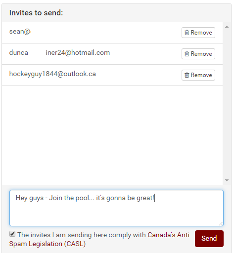 Once you have finished setting up your pool, you are ready to send out your invitations!